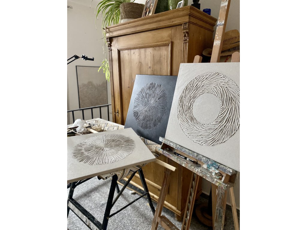 Obraz tvorený hrubšou štruktúrou, dplnený o zlatú patinu. 50x50cm.